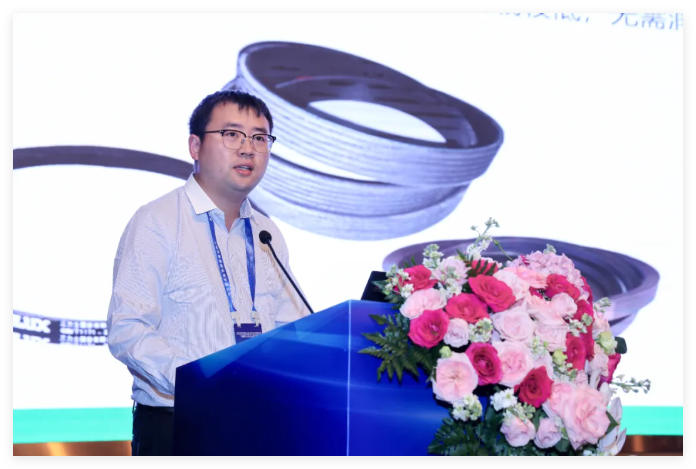 浙江丰茂科技股份有限公司技术质量总监王滕滕作了《抗噪音EPDM多楔带》报告他从多楔带噪音种类及原理、新型方案及抗噪音能力等方面展开介绍,探讨了传动带抗噪音技术创新。