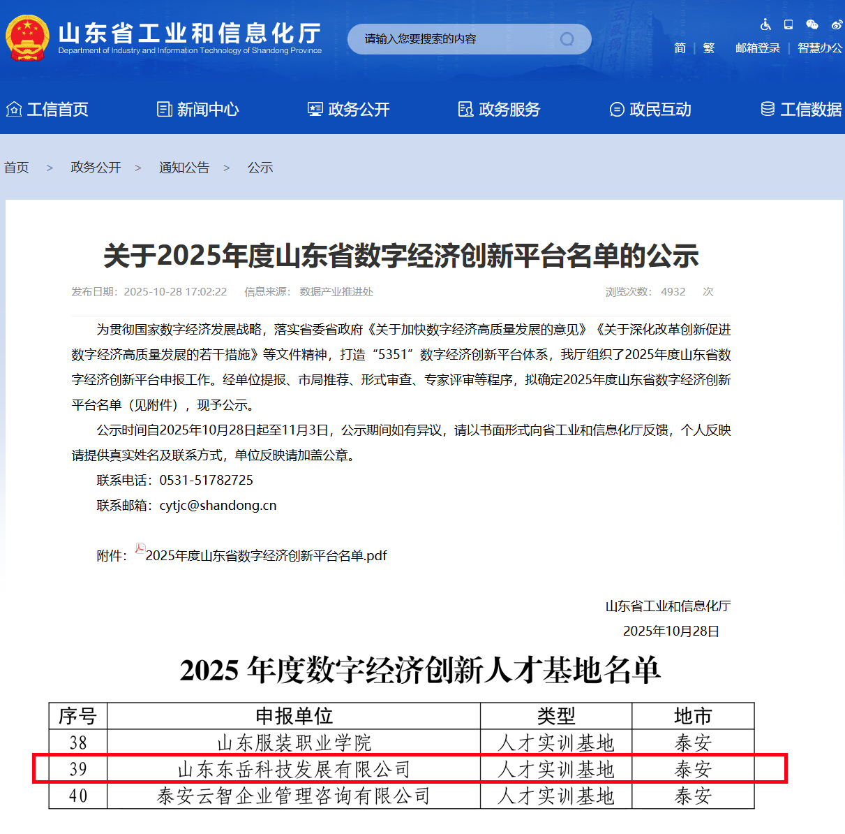 近日,山东省工业和信息化厅公示了2025年度山东省数字经济创新平台名单,东岳轮胎凭借在数字经济领域的扎实布局、创新实践及人才培育成果,成功入选2025年度山东省数字经济创新人才基地榜单,这既是对公司数字化转型成效的认可,更是对企业在人才培养与创新驱动发展道路上的高度肯定。